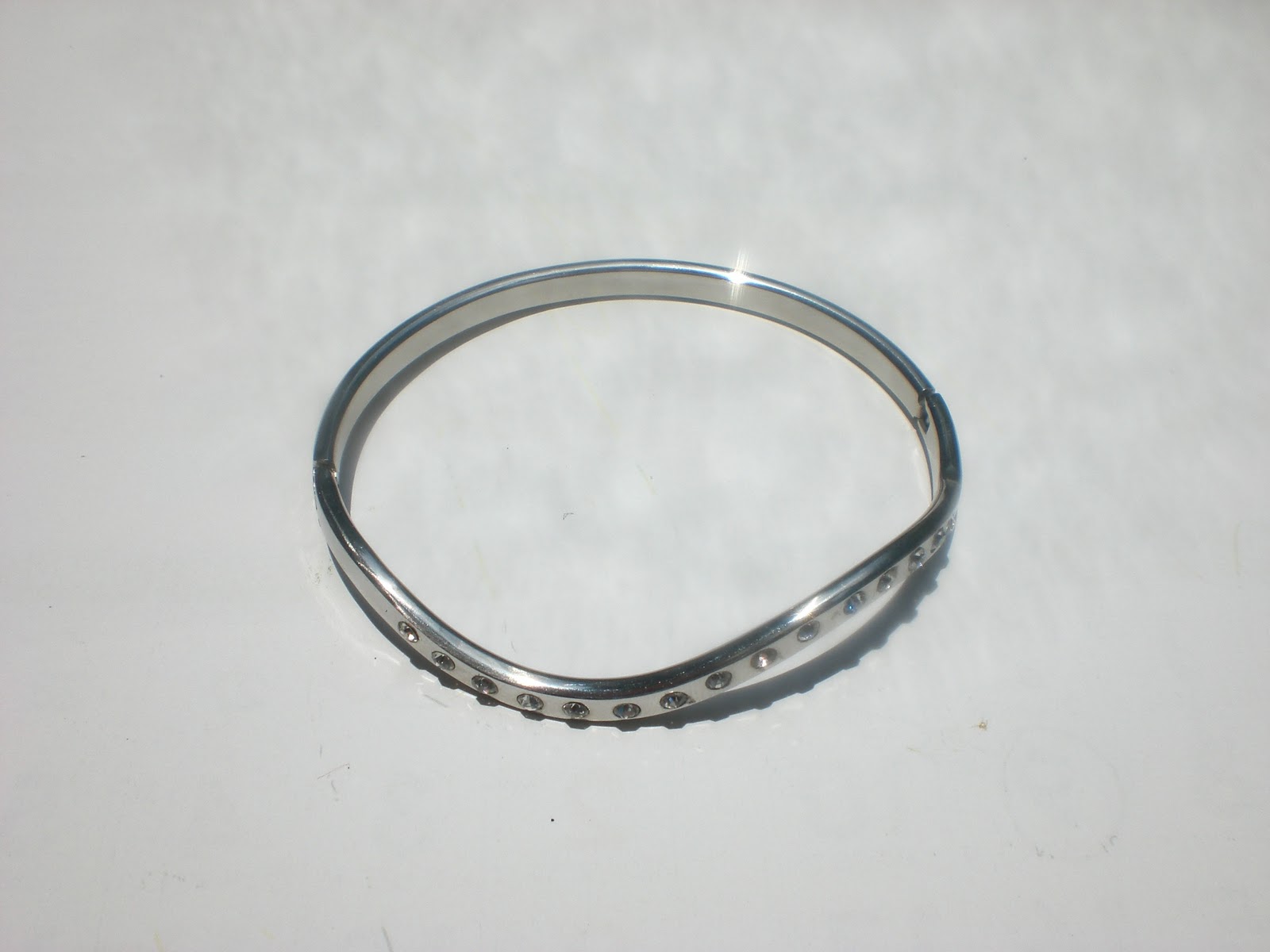 Gelang krepyak baja putih/monel anti karat dengan mata diamond bening.